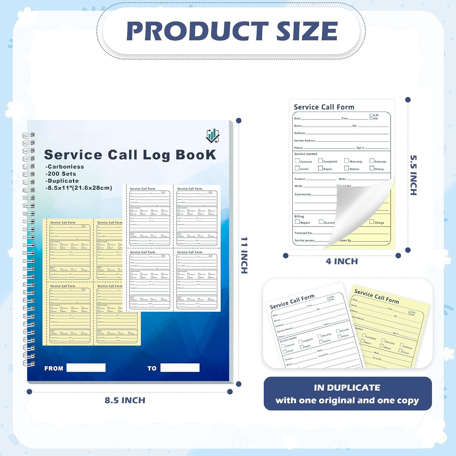 - 200 Two Part Carbonless Sets in One Book:Each book includes 200 preprinted 2 part carbonless service forms No need for carbon paper Simply write once and get duplicate copy instantly Perfect for service log book and work order tracking