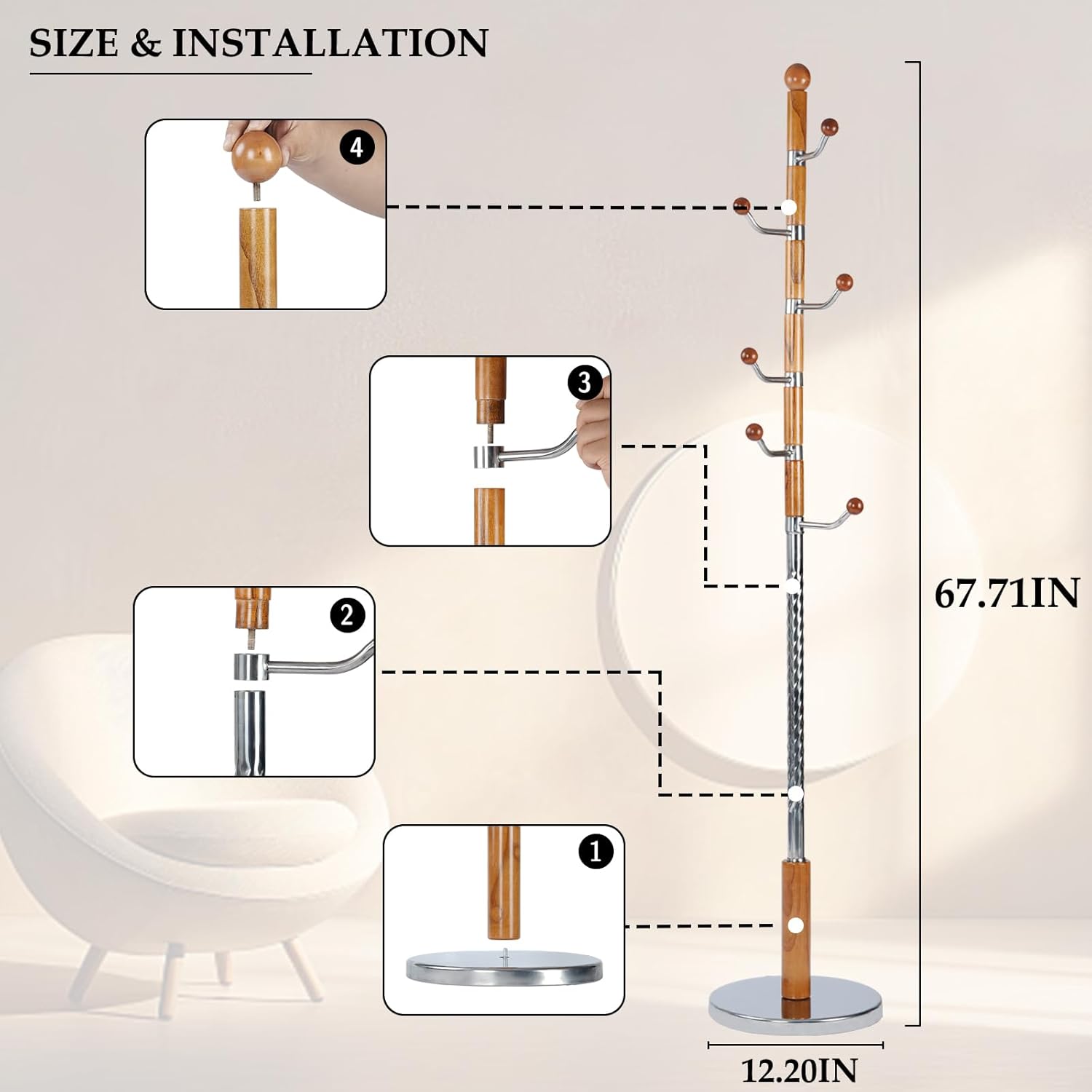 - 【Keep Your Cool】 With numbered parts and easy-to-follow instructions, our solid wood coat stand can be assembled in under 10 minutes, helping keep your home a frustration-free zone without unnecessary hassles. .
