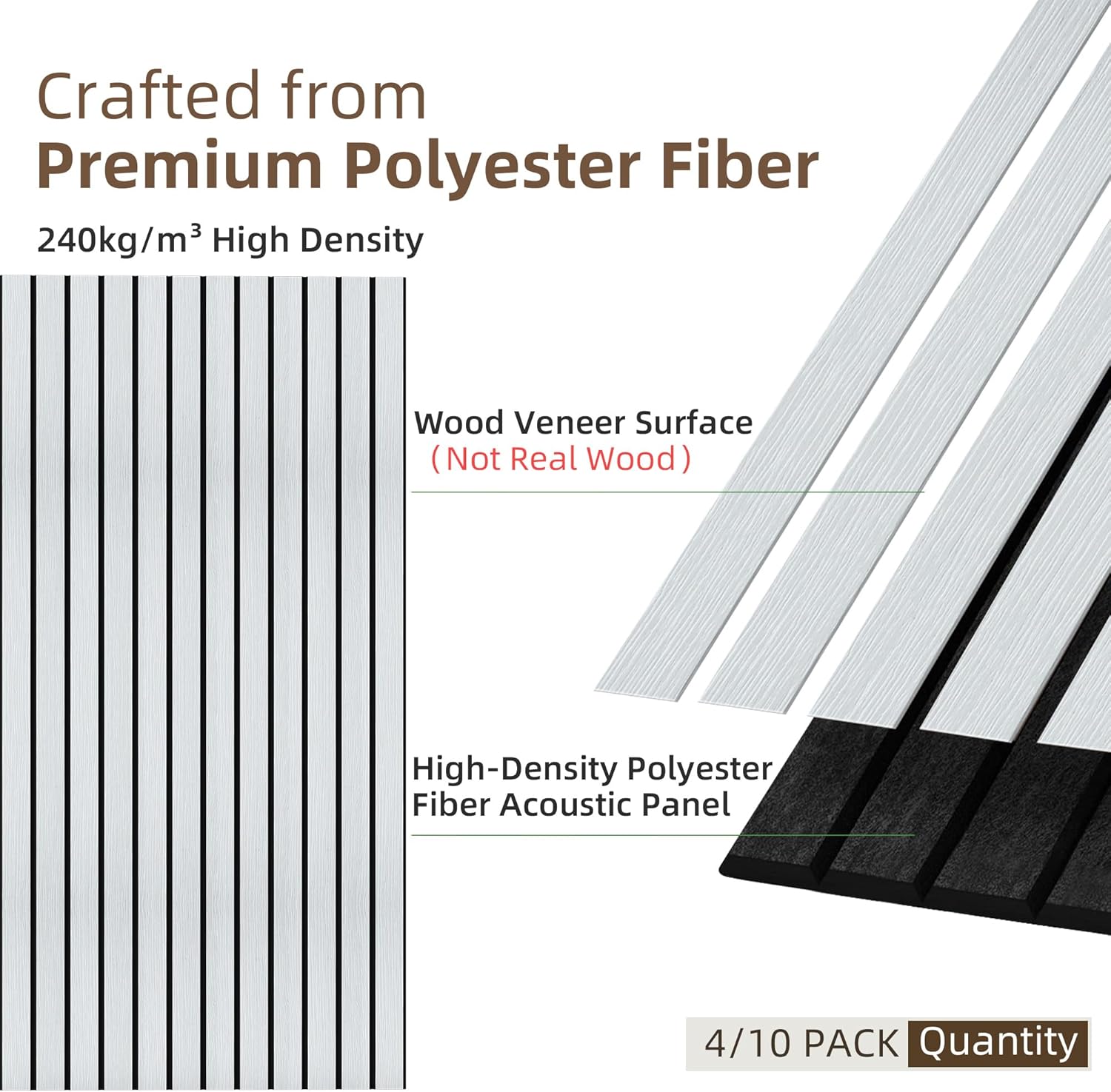 TO-TH Wood-Look Acoustic Wall Panels, 10 Pack 47.2” x 23.6” Acoustic Panels, Decorative Sound Absorbers Sound Dampening Panels for Home, Office, Basement, White Oak