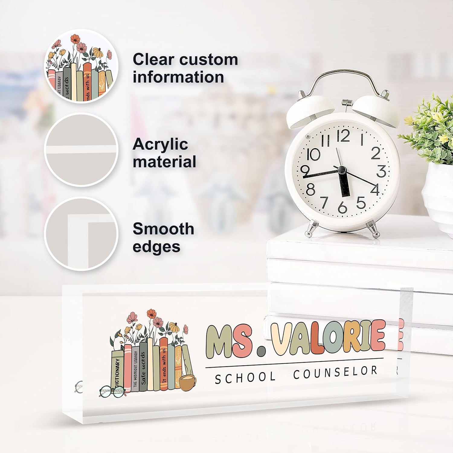 - 【High-Quality Acrylic Material】Our factory uses high-quality solid acrylic blocks to make name plates, and uses the latest high-definition UV printing machine to ensure that the content on the acrylic name plate is clear and not easily faded. So it will stand out on any desk, fully reflecting your professional ethics.