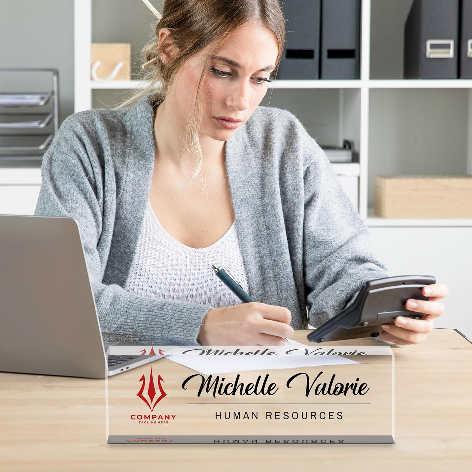 Personalized Name Plate for Desk, Custom Desk Name Plate, Acrylic Name Plate Office Desk Accessories, Personalized Office Gifts for Coworkers Teachers, Employee Appreciation Gifts (B-BusinessLogo2)