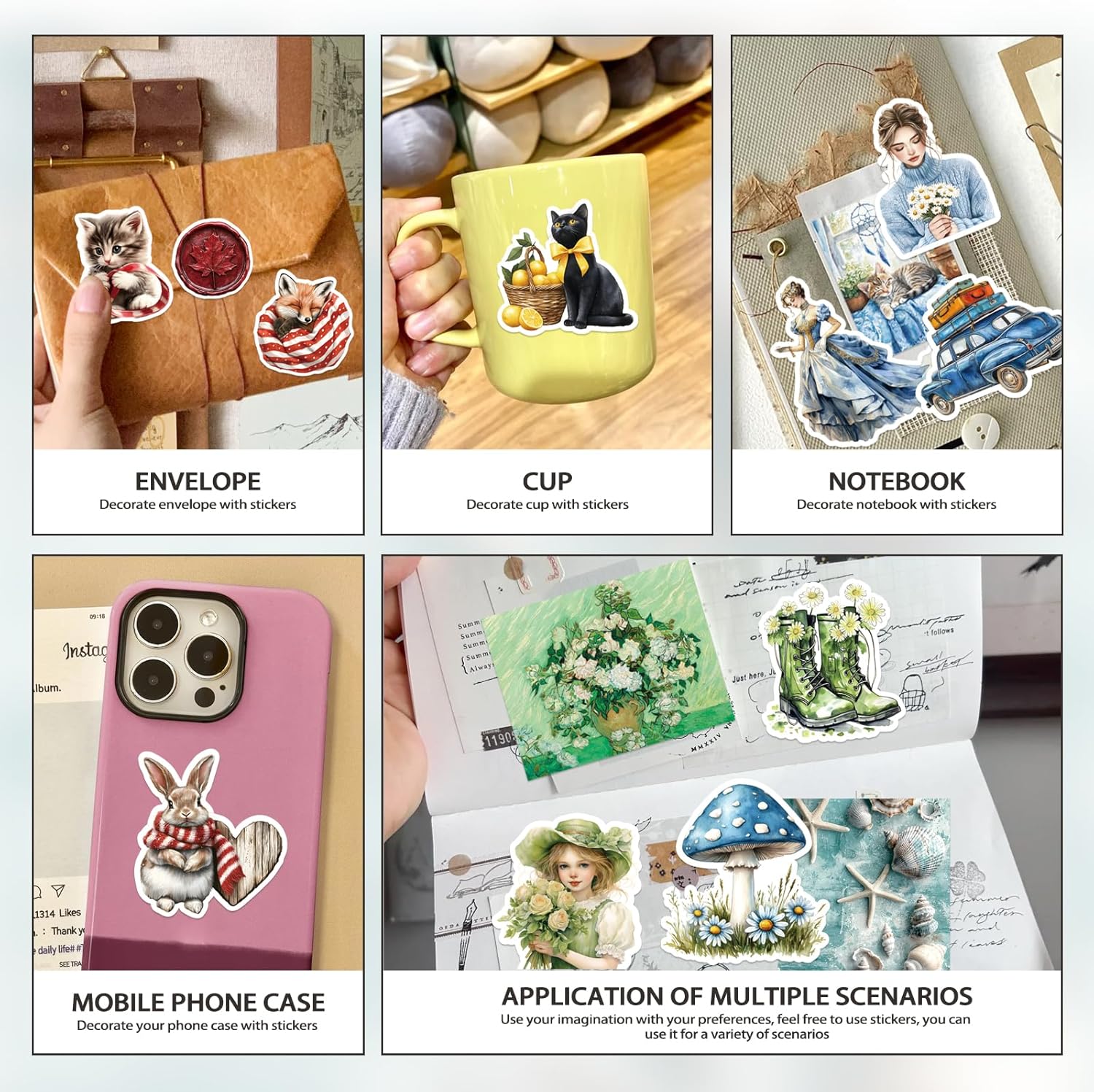 - Aesthetic Scrapbook Stickers: you will get 480 pcs vintage aesthetic junk journal stickers,240 different designs,2 of each.Each sticker sizes 2-3 inches.