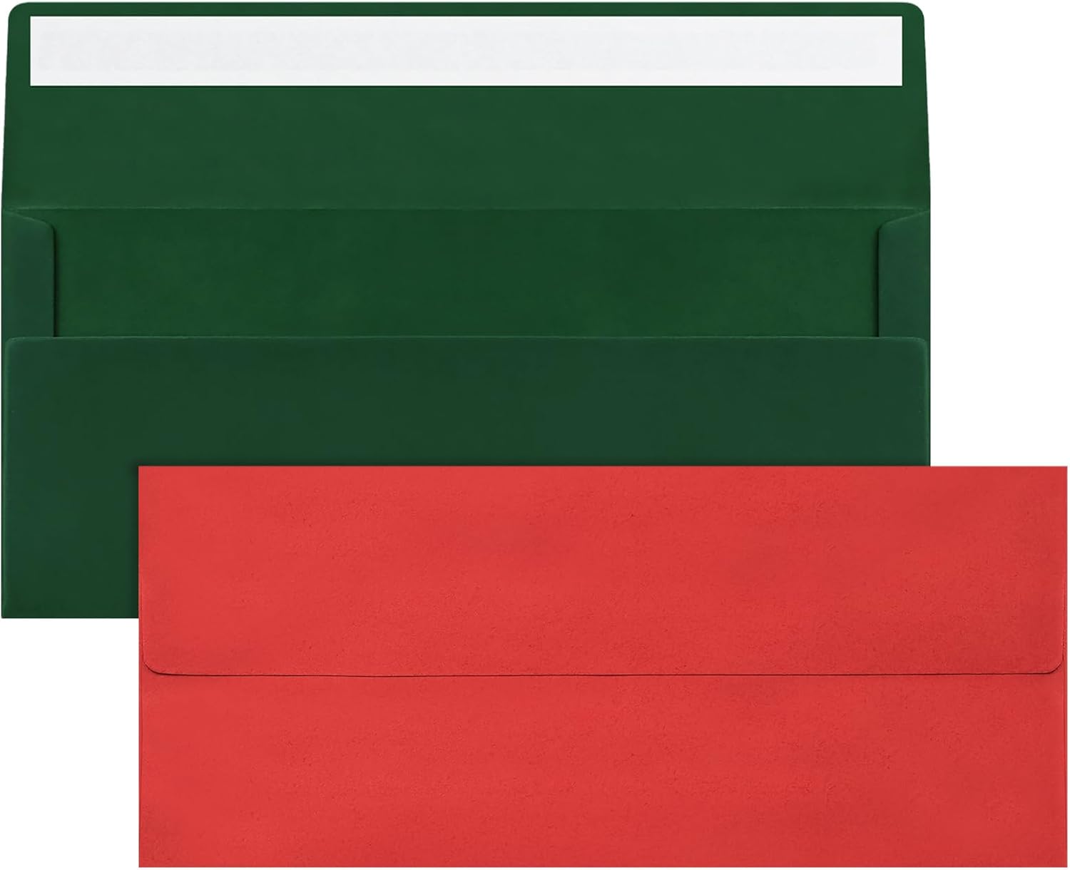 - 【Red and Dark Green #10 Business Envelopes】These #10 business envelopes feature a red and dark green color. The envelopes kit contains 100 pieces 4 1/8 x 9 1/2 Inches red envelopes and 100 pieces 4 1/8 x 9 1/2 Inches dark green envelopes, perfect for your office or home purposes