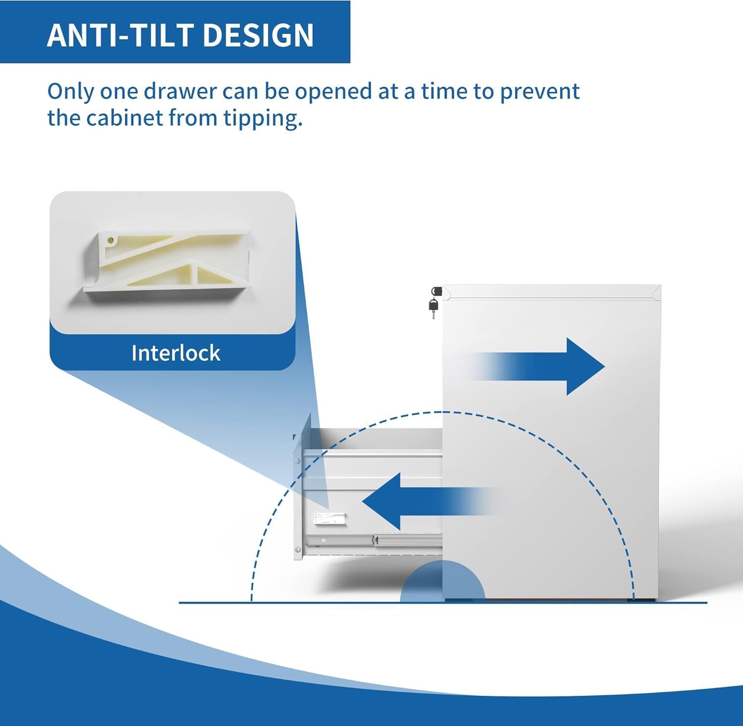 - ăAnti-tilt DesignăThis vertical legal file cabinet designed with full extension and steel ball-bearing suspension, all drawers of the file cabinets can be opened and closed quietly and easily. The anti-tilt system ensures that only one drawer can be open at a time, preventing the metal file cabinet from tipping over. You can have peace of mind knowing that your important documents and items are safe and secure.