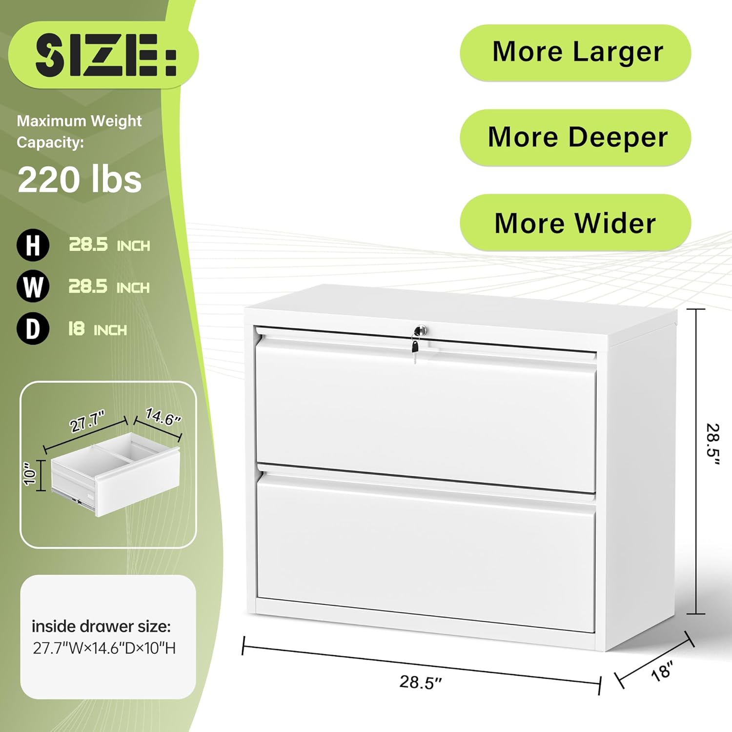 Incbruce Lateral File Cabinet with Lock, 28" W 2 Drawer Filing cabinets for Home Office Home, Office, Fit A4/F4/Letter/Legal File, Under Desk Filing Cabinet (White)