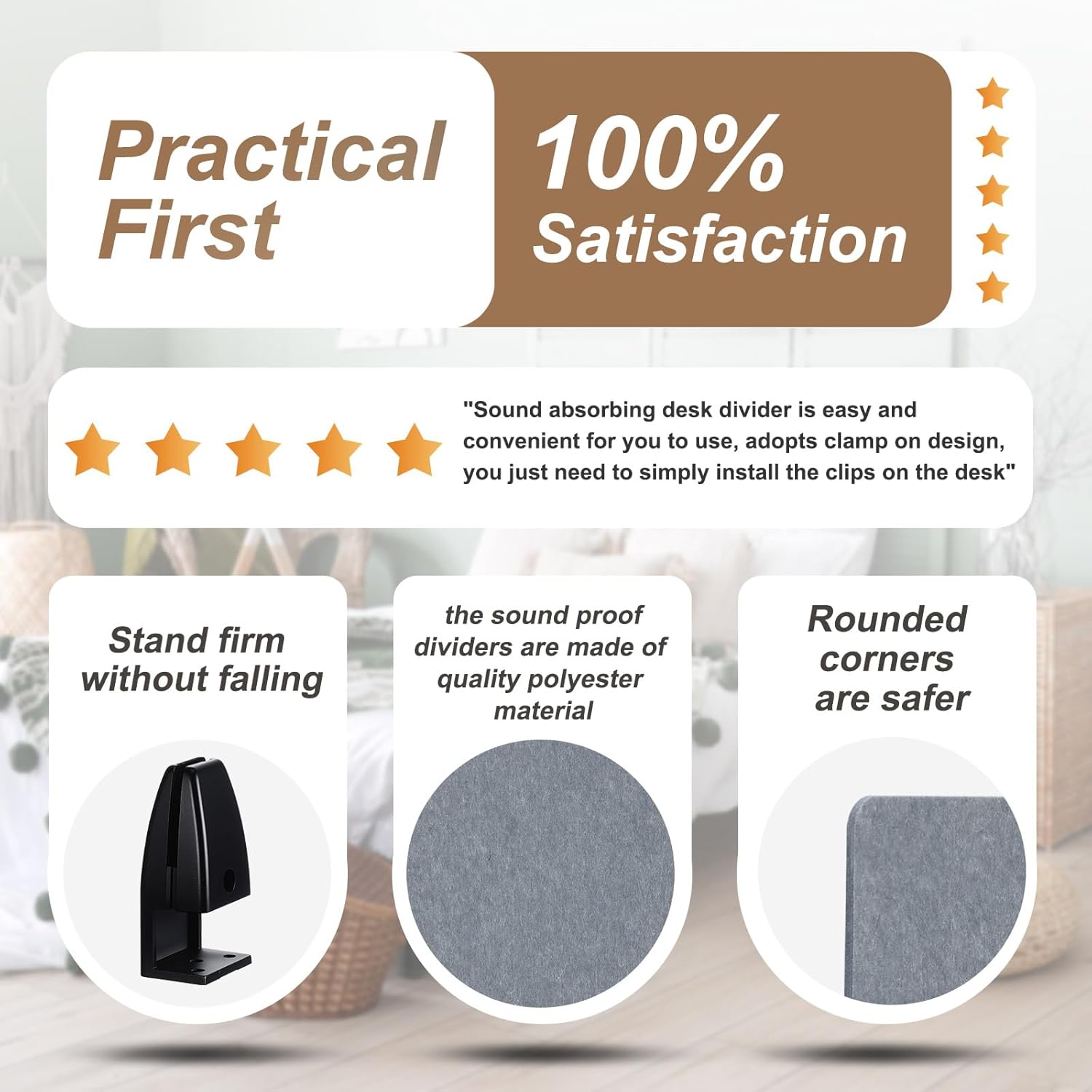 - Material Size: the office partitions is made of quality polyester material, which is light and sturdy, and remains in good condition after long-term use; The size of 47x 24inch and 24×24 inch effectively reduces environmental noise interference and allows you to focus more