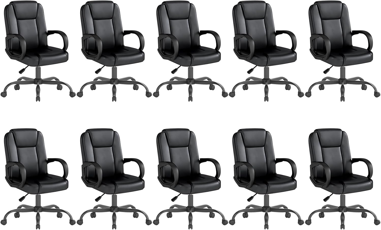 ZZH Executive Office Chair, Leather Desk Computer Chair with Armrests, Mid-Back Swivel Adjustable for Home Office, 10PC, Black