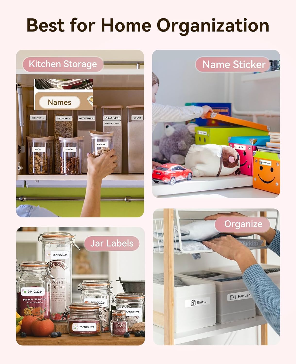 - 【2025 New Version Label Maker】This household organization label maker is the 2024 new version D110 label machine, smaller but better, offering superior print clarity resulting, smooth printing effects and fast processing. Easy to use for quick home use and basic label making, which also can help labeling in school, perfect for back to school gifts.