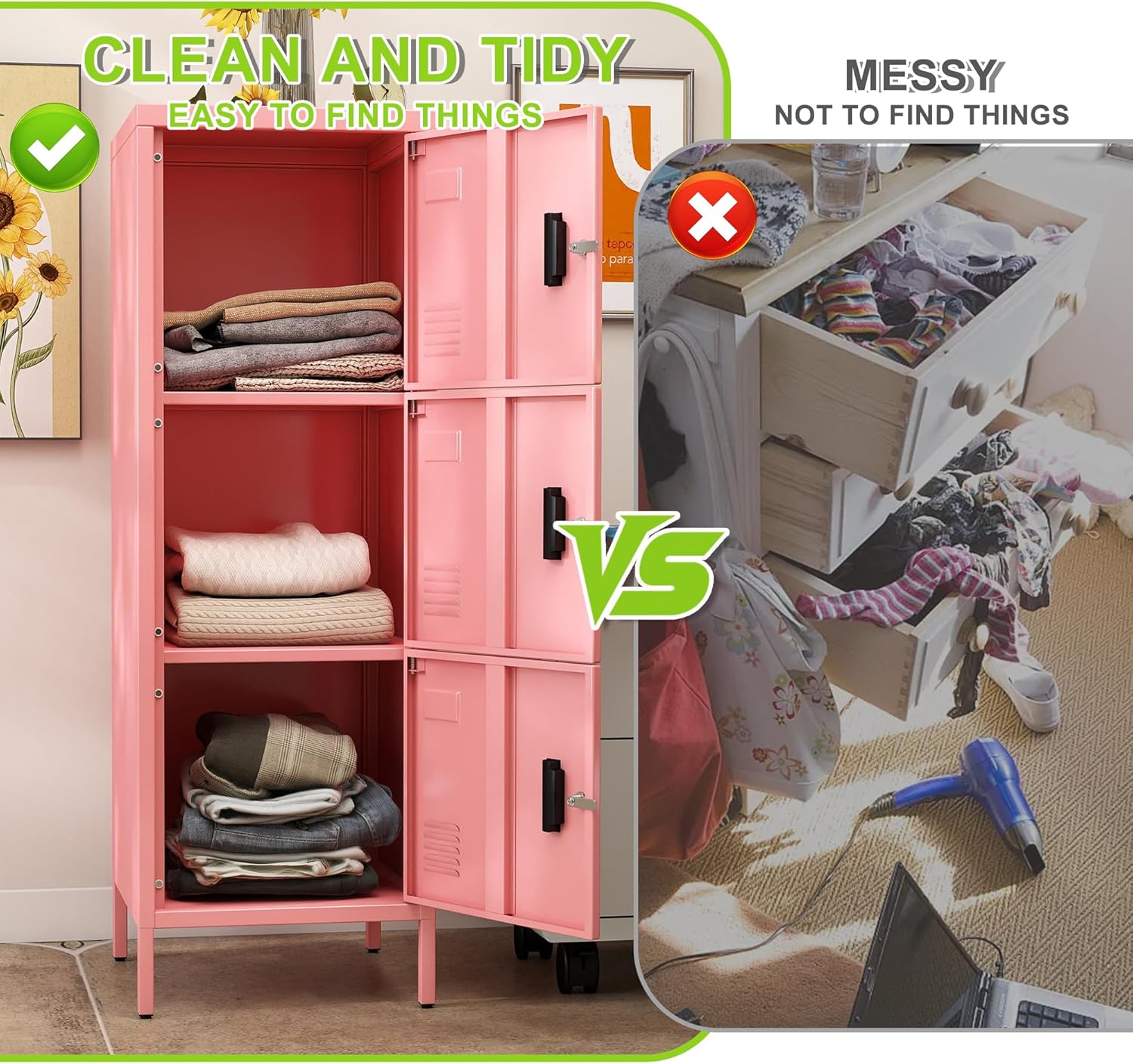 - Versatile Storage Option:Whether you need to organize books, sports equipment, office supplies, or personal belongings, this pink metal locker's three - compartment design provides a flexible and efficient storage solution. Assembly is straightforward with clear instructions included, and maintenance is as simple as wiping down the smooth metal surface