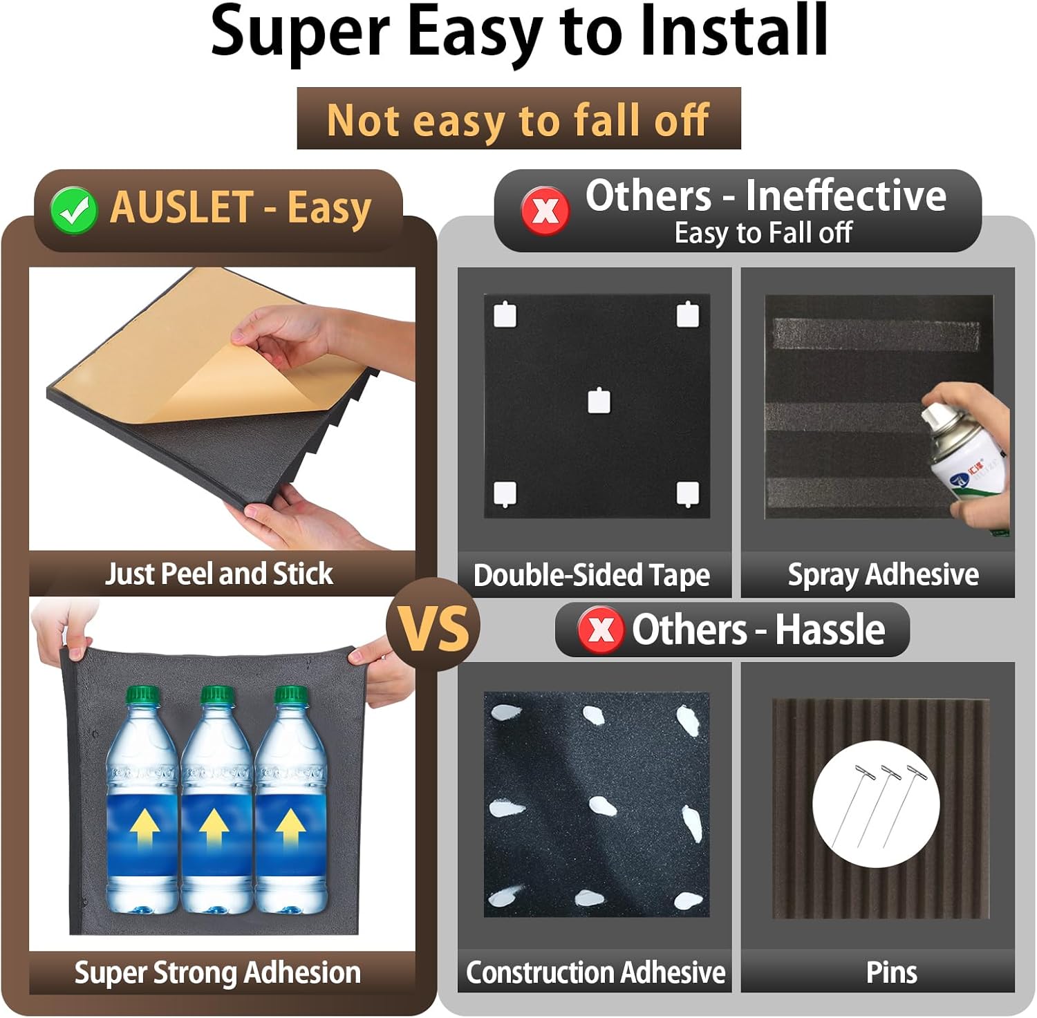 - 🛠️ 【Peel & Stick Acoustic Foam】 Featuring a strong self-adhesive backing, these soundproof wall panels install easily without extra glue or tools. Just peel and stick to apply to doors, walls, ceilings, or any smooth surface in minutes.