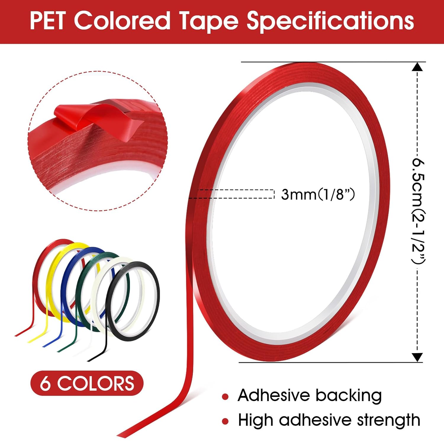 - Set of 6 rolls of high-quality 3mm (1/8 inch) pin stripe tape for car, perfect for grid creating, detailing, or whiteboard use. 6 Colors Each roll is 108 feet long, made of durable PET with strong self-adhesive backing, no paper waste