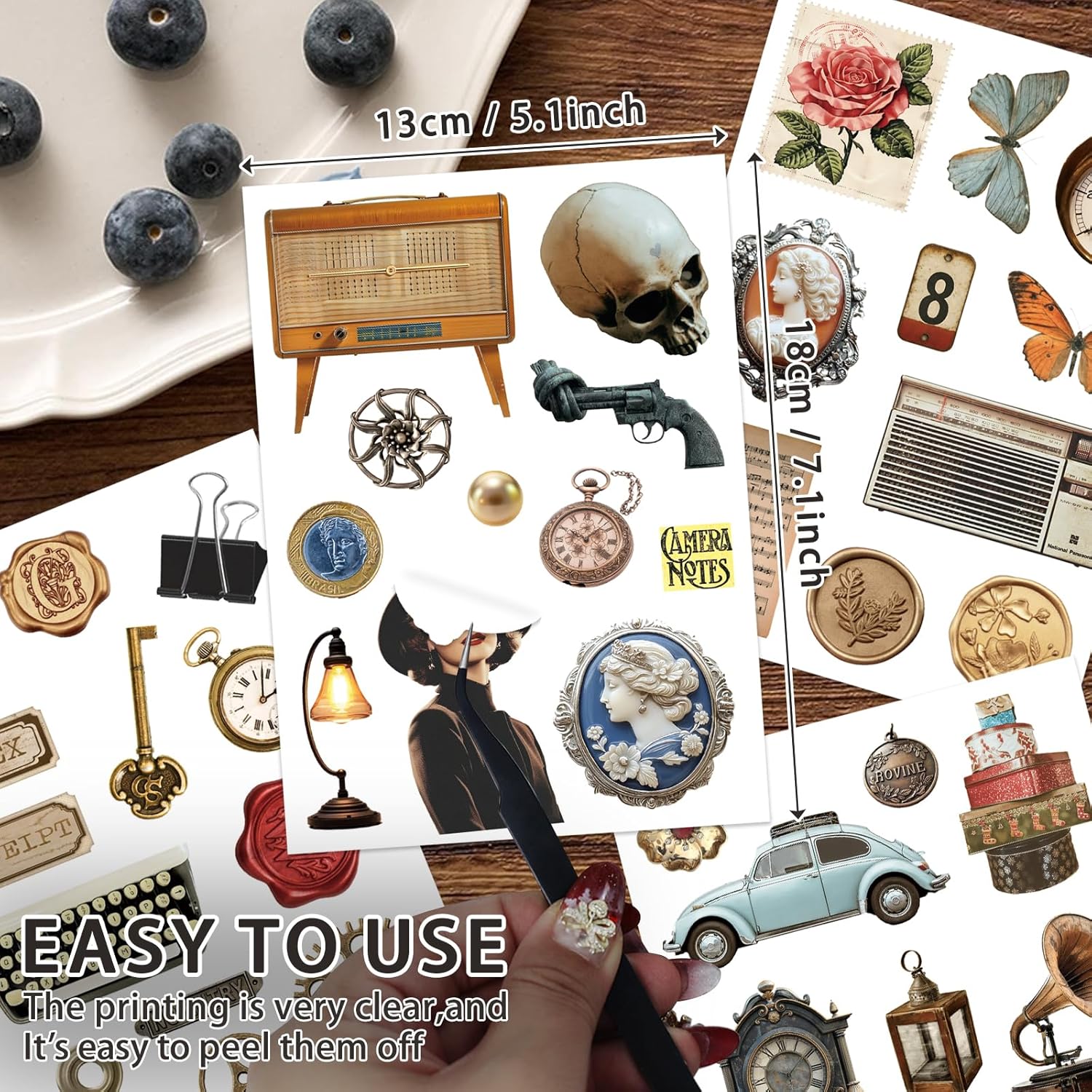 - Crafted on premium Washi paper, its fine texture blends elegantly with your journal or stationery. High-fidelity printing perfectly captures the warm tones and intricate details of these retro objects. With clean-cut edges, each sticker is easy to peel, making your creative process a pure delight