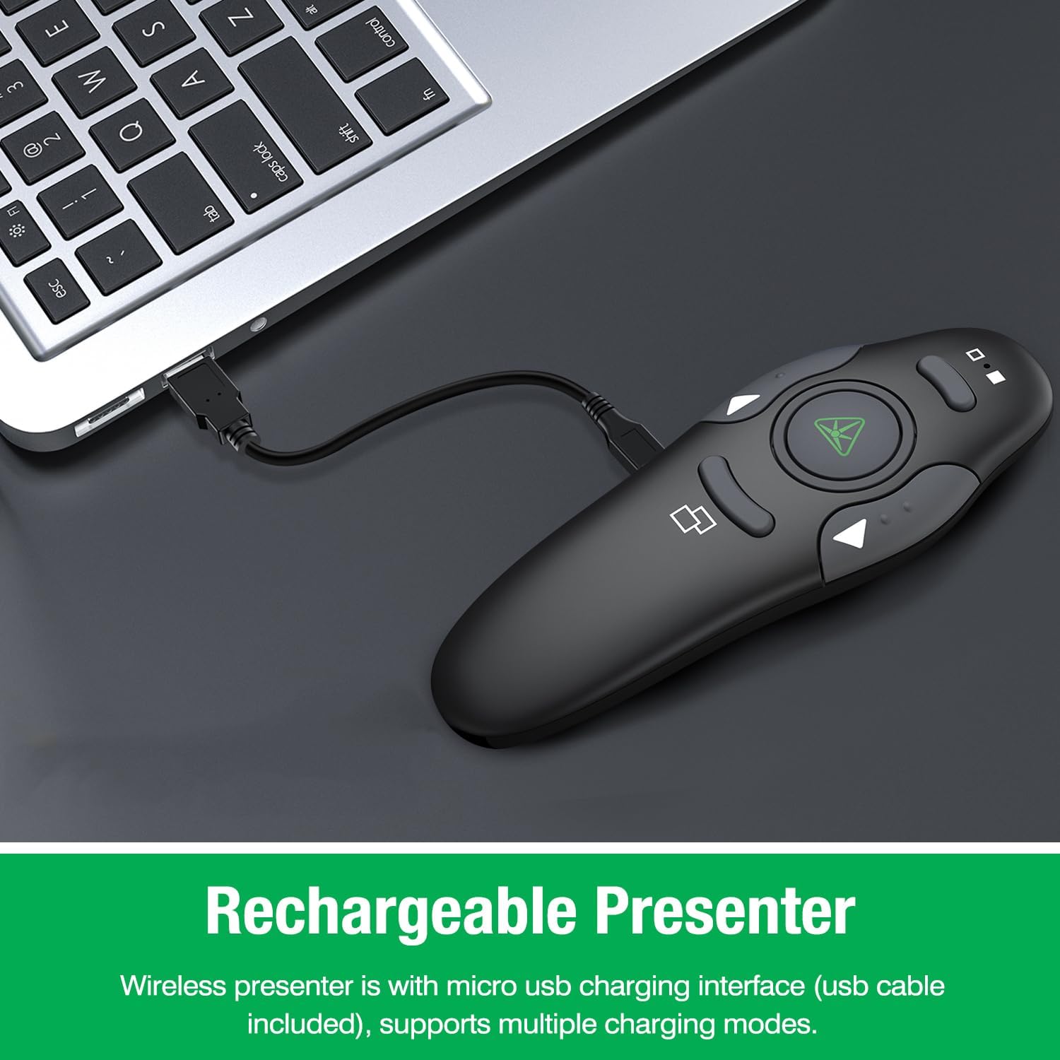 DinoFire Green Presentation Clicker Wireless Presenter Remote, RF 2.4GZ Rechargeable USB Slide Clicker for Powerpoint Presentation Computer Laptop