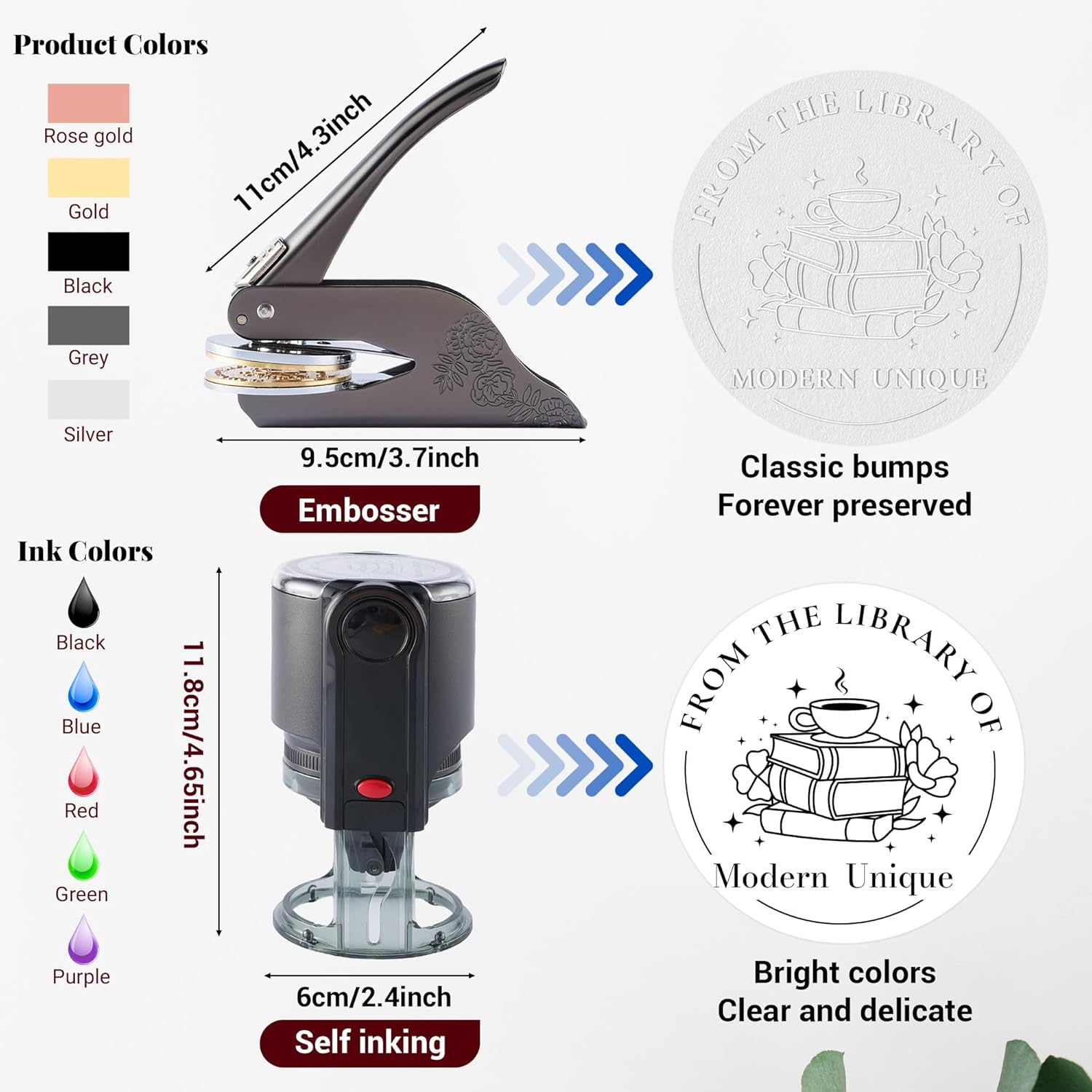 - šElegant Design: Available in a range of stylish colors including rose gold, silver, black, and gold, our personalized book embosser combines form and function. With its compact size (approximately 10 cm in length), it resembles a miniature stapler, making it not only portable but also a chic addition to your workspace or home decor. It's perfect for showing off your taste wherever you go.