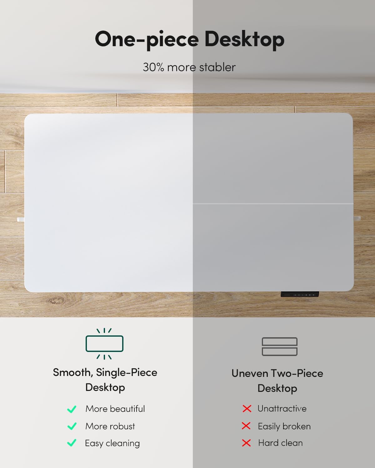 - Simplified Assembly: The Fezibo electric sit-stand desk includes detailed instructions for streamlined installation. One-piece desktop requires less steps than joined desktops to save time and effort. Please contact our support team if you have questions about assembly or product selection.
