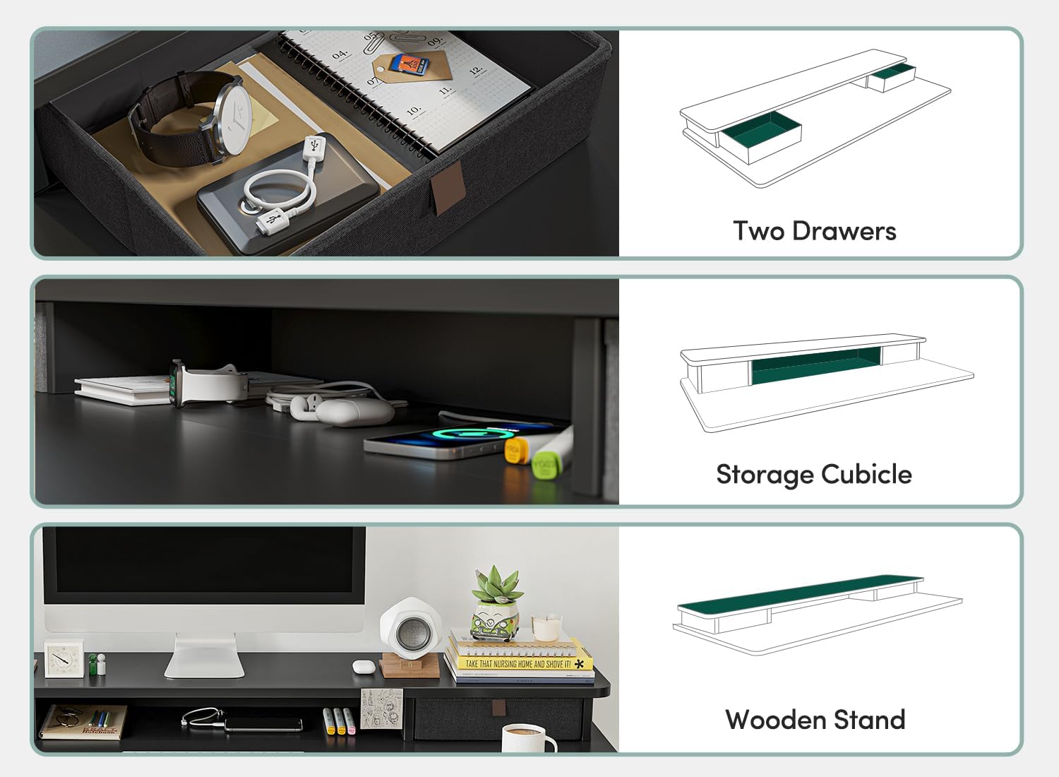 - Deeper Desktop Design: The 63 × 28 inchs standing desk provides deeper desktop space, keeping your eyes and computer screen at a healthy distance, while providing more space to place your items