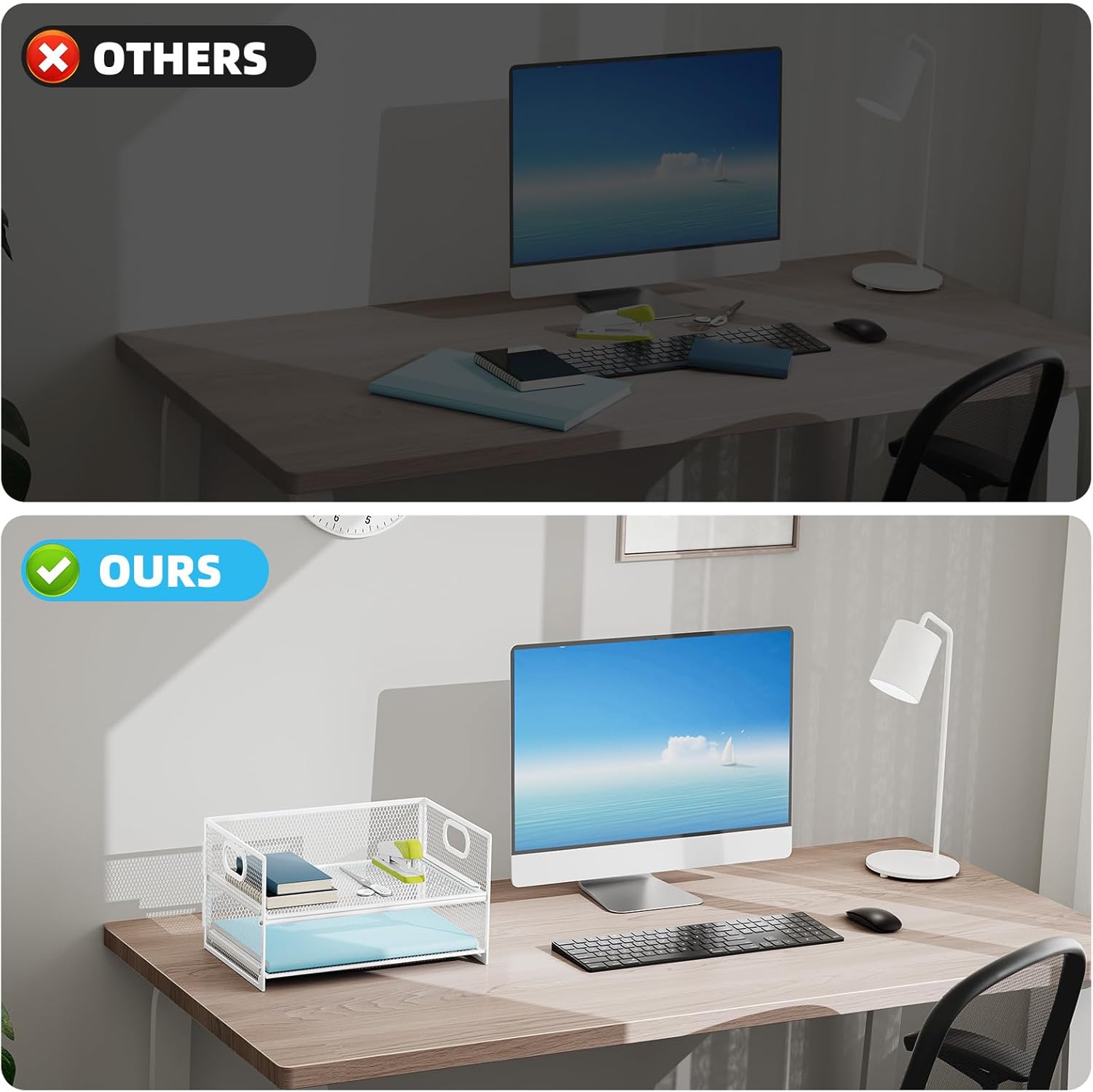 - 【MULTI-PURPOSE ORGANIZER】2-tier layered design and large capacity make the paper organizer become an ideal choice for managing all kinds of letter-size letters, paper, books, bills, etc. Let you quickly identify the contents of each compartment super easy!