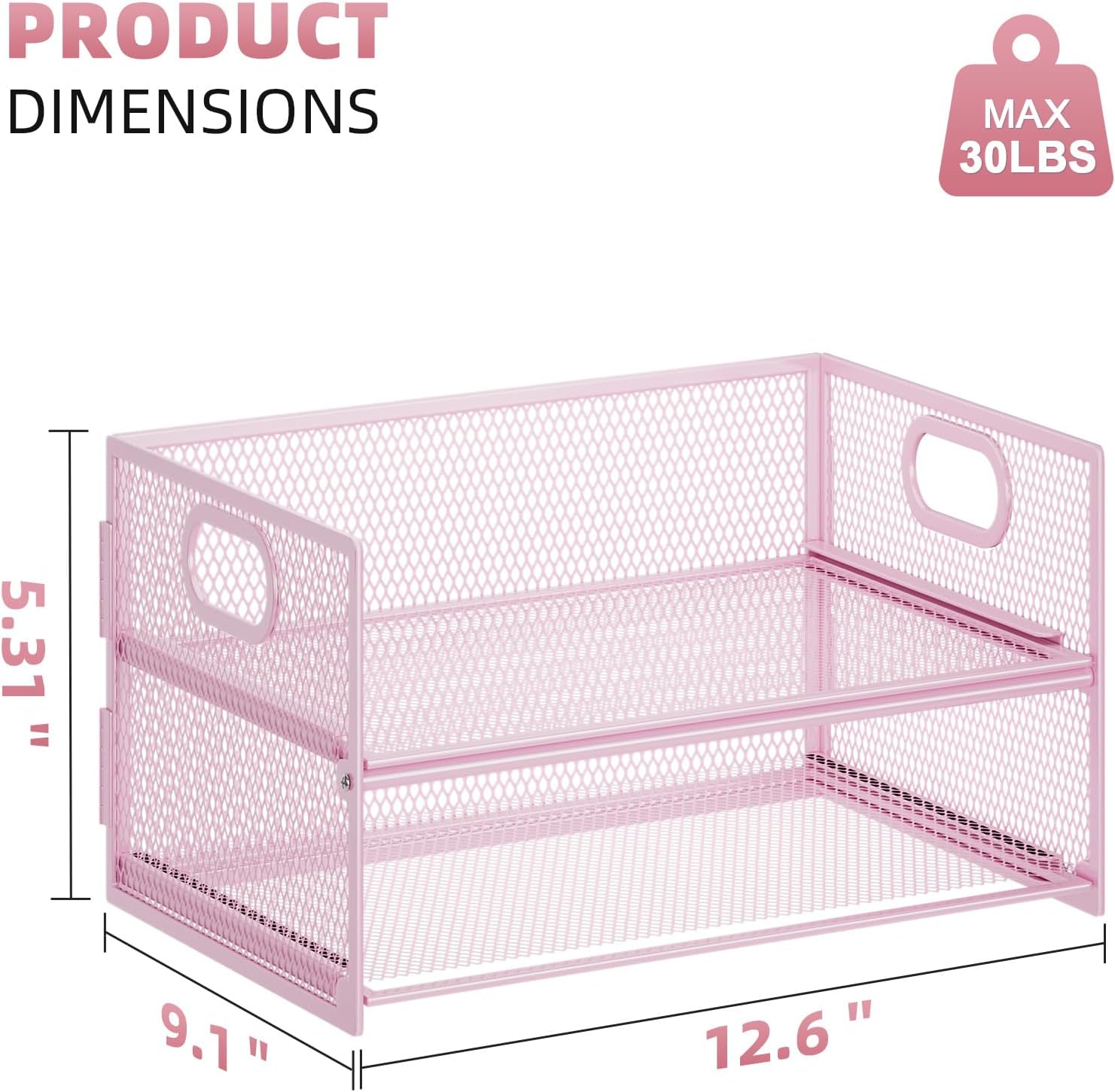 Marbrasse 2 Tier Paper Organizer Letter Tray, Mesh File Organizer with Handle, Paper Sorter Desk Organizer for Home Office Supplies - Pink