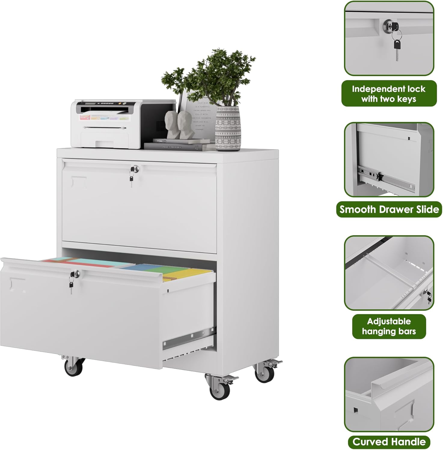 - [All-steel Stable-Rustproof] 2 drawer file cabinet with wheels has a reinforced steel frame with a corrosion and stain-resistant powder coat, Rugged and not easily deformed,which is ideal for long-term use.