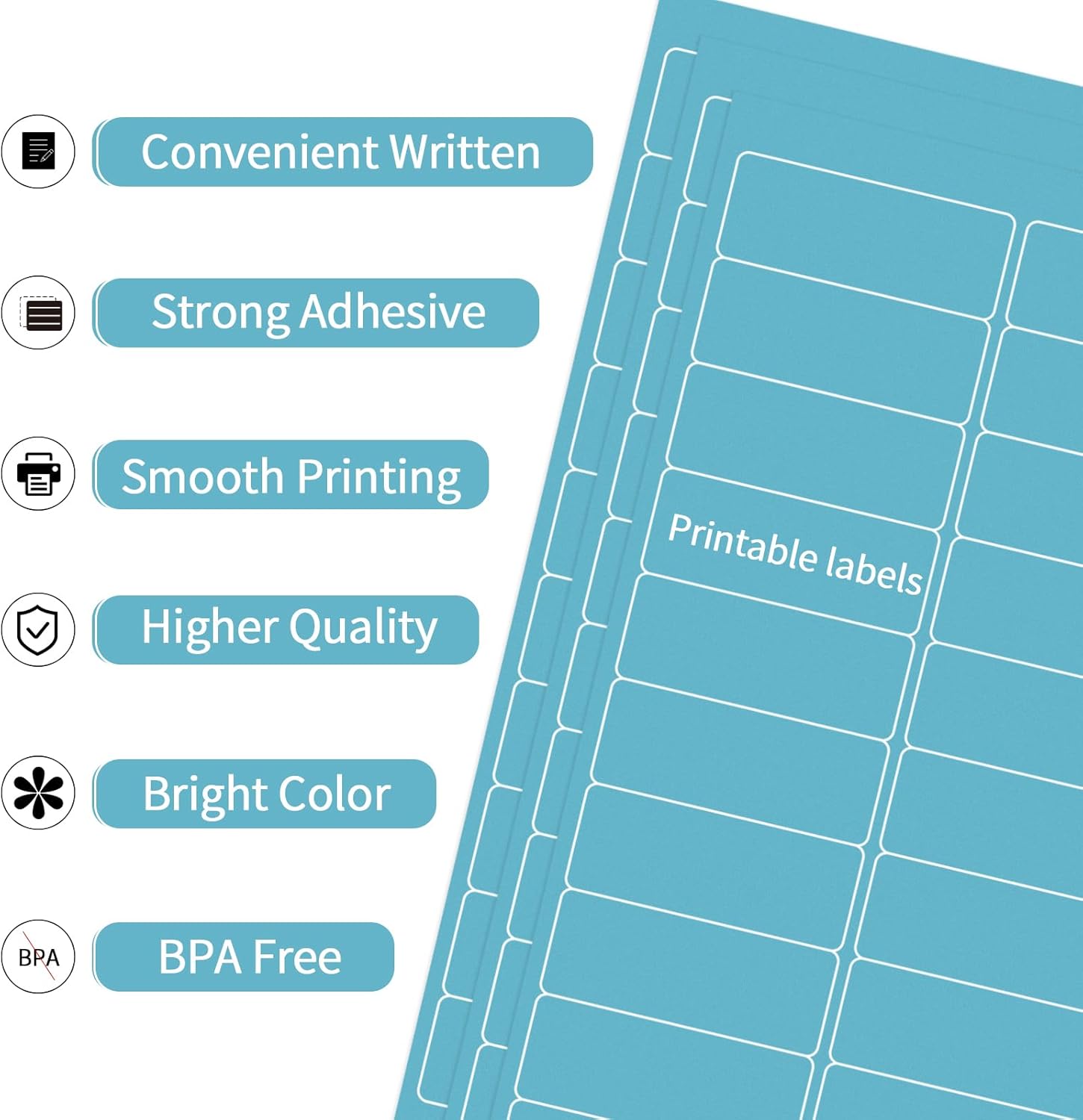 -1" x 2-5/8" Address Labels- Neon Color Stickers for Laser/Inkjet Printer mailing Labels 8.5"×11"-Lake Blue
