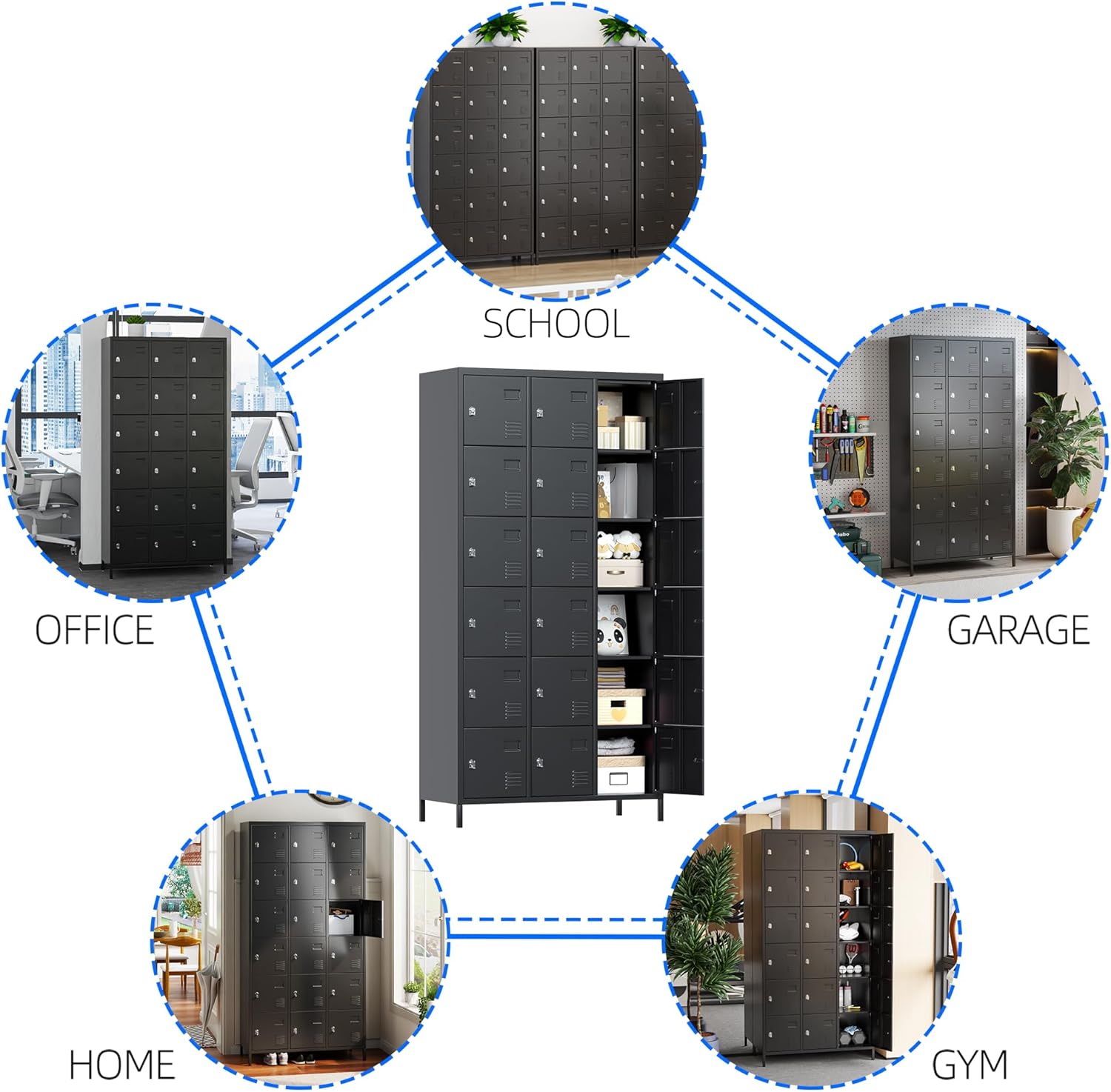 - 【High Quality】Metal storage locker is made of high-quality cold-rolled steel, thick and sturdy, and the surface is coated with high-quality environmentally friendly powder coating to form an anti-XIU barrier and easy to clean.