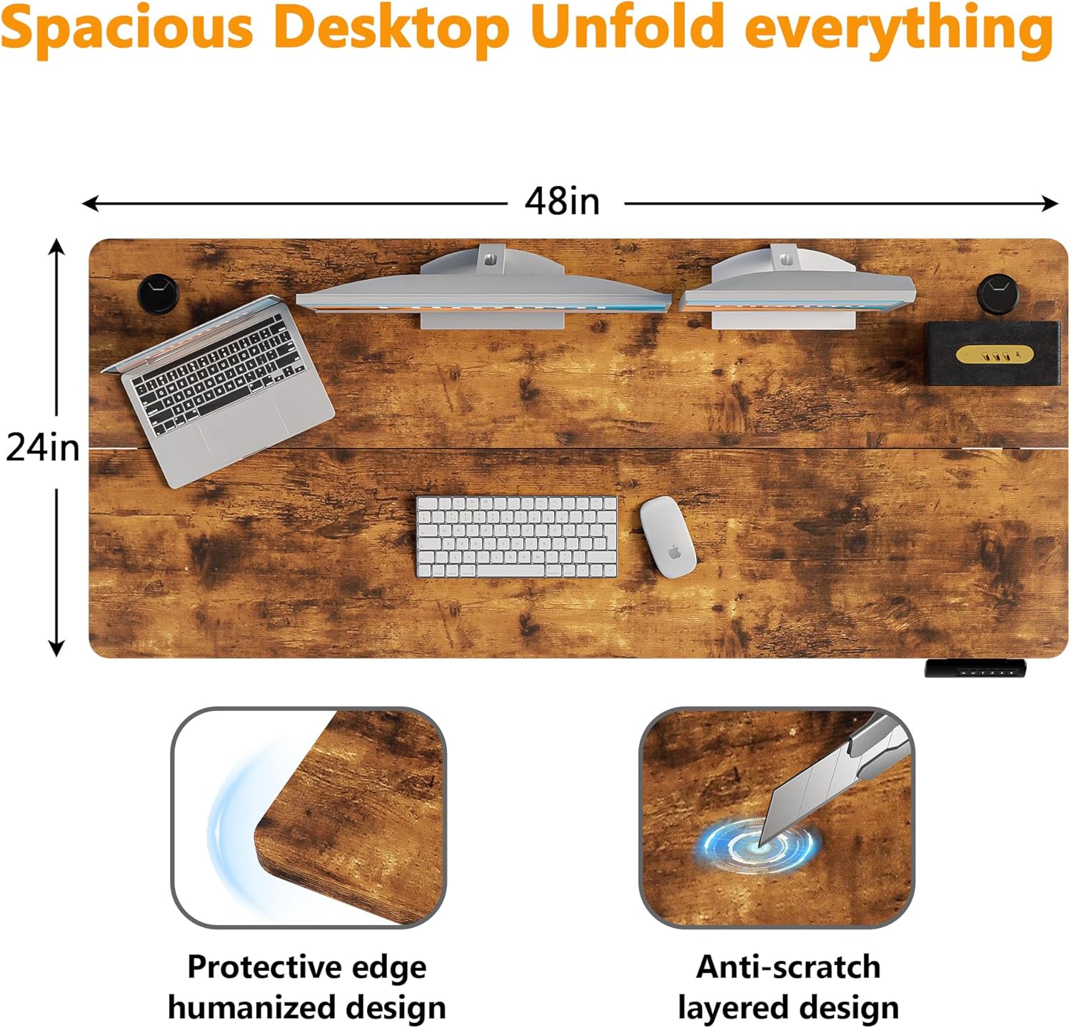 - 【Extra Large Workstation】– Boost productivity with our 48" L x 24" W desktop, providing ample space for monitors, keyboards, and office essentials. Designed for professionals and gamers, this clutter-free desk ensures a smooth workflow for work, design, or gaming. Enjoy functionality and freedom in one versatile workspace