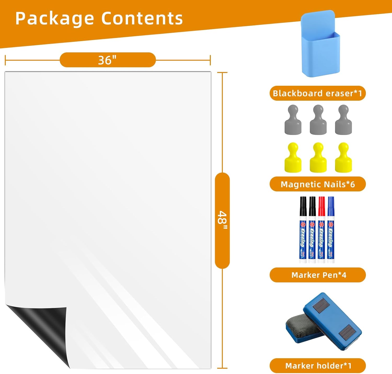 Magnetic Whiteboard Contact Paper, 36" x 48" Stick on Magnetic Dry Erase White Board Sticker on Wall, Easy to Write for Drawing, School, Office, Kitchen Fridge