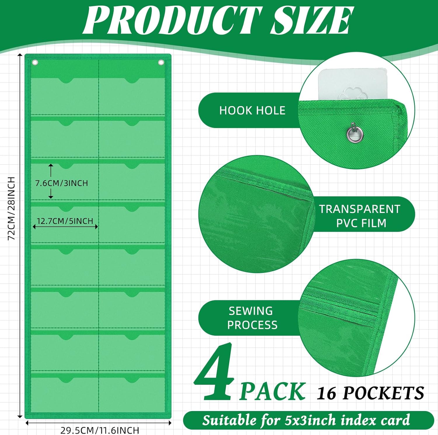 4 Pack 3'' x 5'' Index Card Holder Sleeve 16 Slot Plastic Organizer Hanging Wall Mount Business Note Cardholder PVC Clear Organizer Pocket for Classroom Office Library Home (Multicolored)