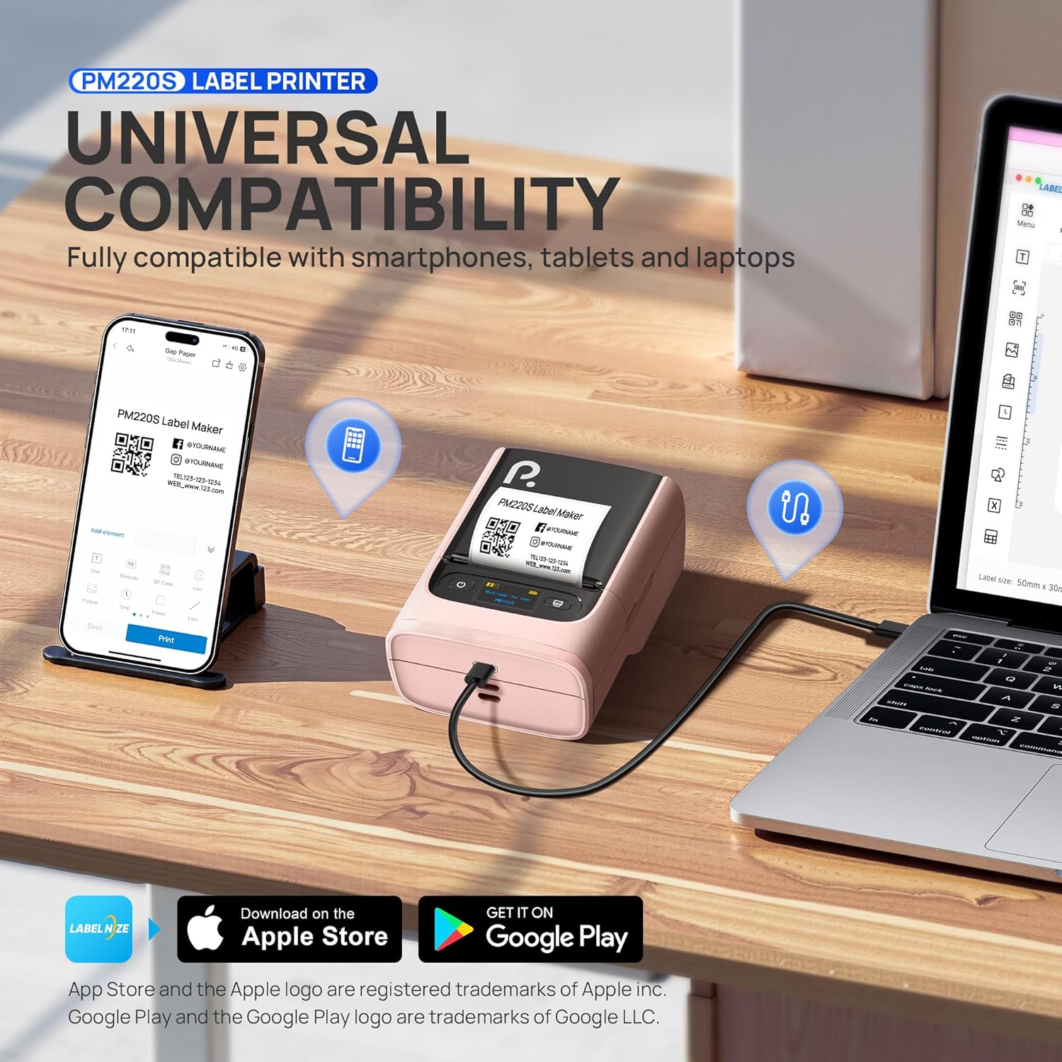 - 【User-friendly】PM220S Bluetooth label maker seamlessly connects with iOS, Android, and PC. For mobile users, simply download the "Labelnize" app to print via Bluetooth.For PC, you need to download the driver and APP, please visit "polono.com" to obtain the PM220S label printer computer driver and APP. Notice: Please DO NOT connect directly via Bluetooth for all devices