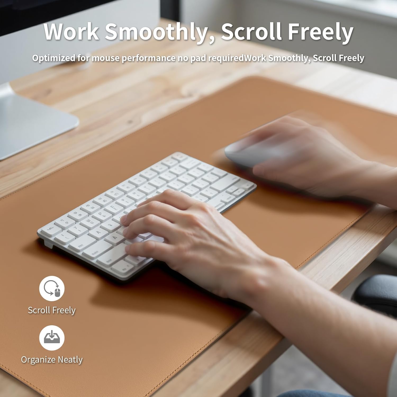 - 【Upgraded Anti-Slip Base – Stays Firmly in Place】 This leather desk protector mat features a textured anti-slip base that grips your desk better than traditional PU desk pads. Whether you’re typing, writing, or gaming, the desk mat laptop stays flat and stable on wood, glass, or metal desktops—ideal for all-day use.
