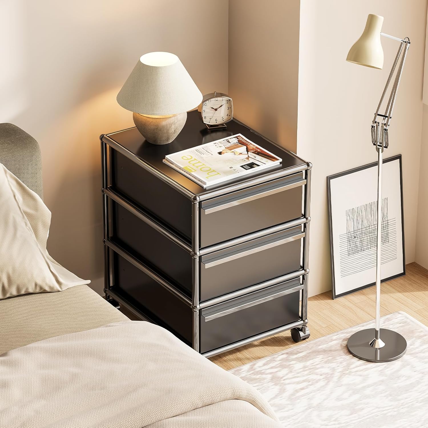 Steel Mobile File Cabinet for Office & Home with 360° Silent Wheels, Smooth Drawer Slides, Large Capacity, Waterproof and Rust-Proof, Stylish & Durable Storage Cabinet (3 Drawer, Black)