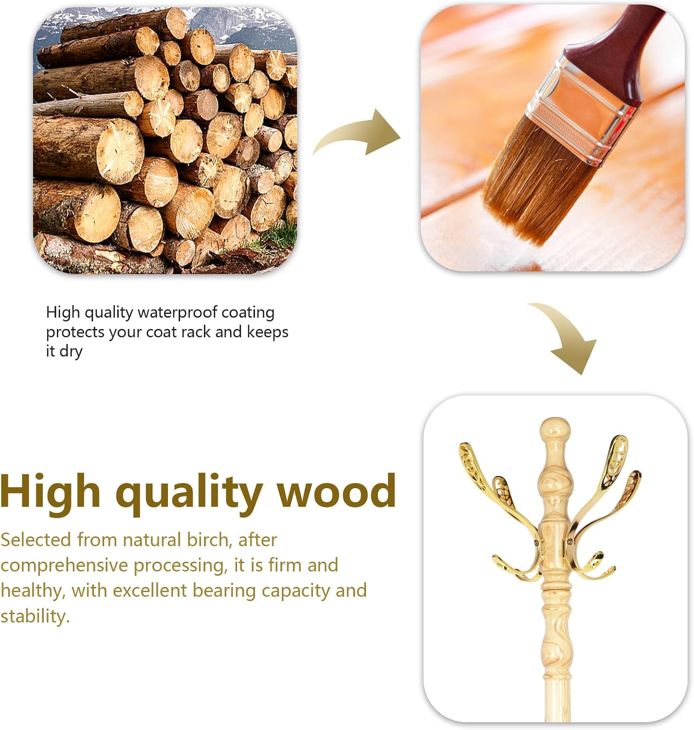 • STURDY SOLID BASE DESIGN: This coat rack freestanding stands out with a rock-solid solid wood base, staying stable even under 120 lbs. Its resin hooks have smooth rounded balls to avoid fabric snags on coats or scarves. This care makes the wooden coat rack durable yet gentle on belongings. Whether hanging heavy winter coats or lightweight totes, this coat rack stays firm—no wobbling. As a reliable wooden coat rack, it handles daily use without losing vintage charm, and this coat rack freestanding design needs no wall mounting, fitting any spot.