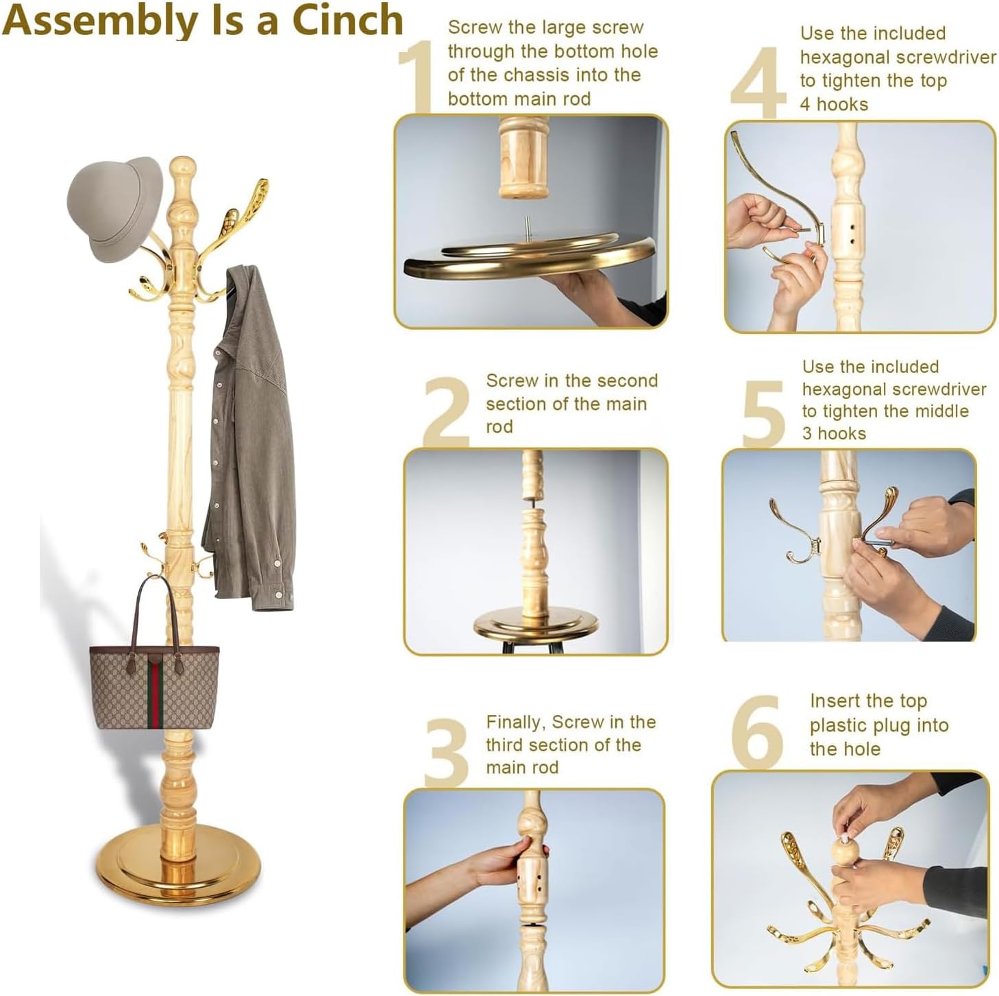 • TOOL-FREE EASY ASSEMBLY: Skip complicated tools—this vintage coat rack comes with a simple kit for minute-long assembly. The wooden coat rack pieces fit smoothly, so your coat rack freestanding is ready fast, perfect for busy days. Our team offers 24-hour support for questions, ensuring hassle-free use. This coat rack is easy to assemble and love, combining vintage style, practical storage, and convenience. For first-time renters or seasoned homeowners, this wooden coat rack delivers function and charm, a must-have for any space.
