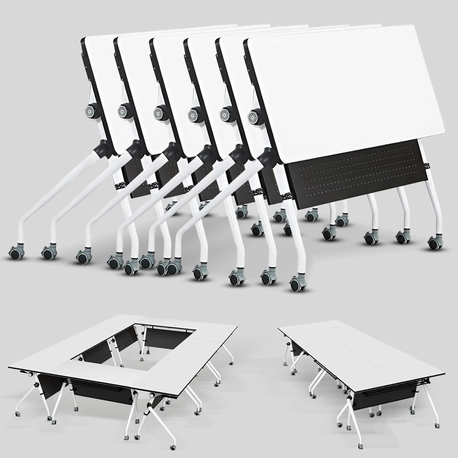Conference Table, Folding Conference Room Tables, Mobile Training Tables with Silent Wheels, Large Rectangular Modular Seminar Table Office Computer Desks for Classroom White (6Pack L47.2in)