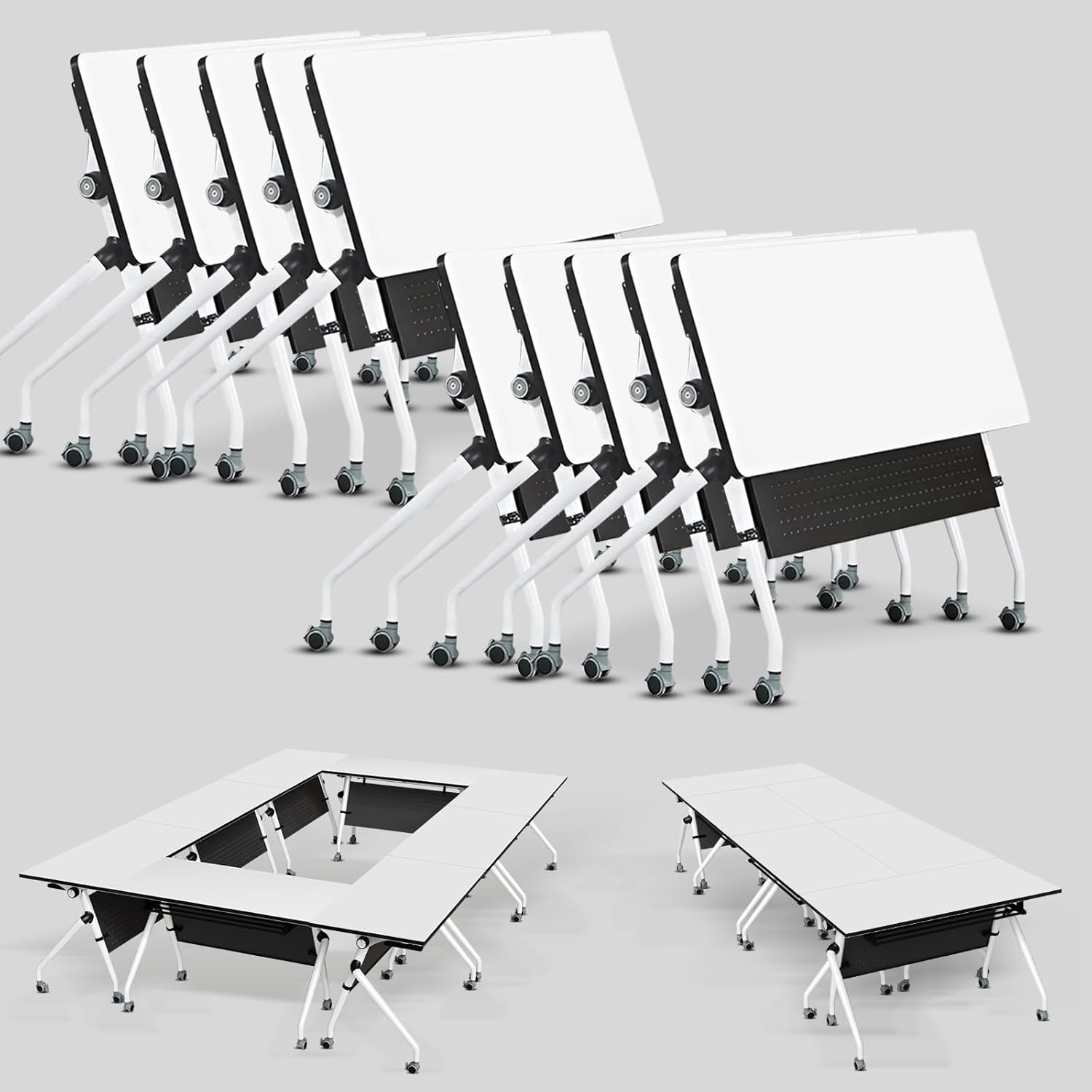 Conference Table, Folding Conference Room Tables, Mobile Training Tables with Silent Wheels, Large Rectangular Modular Seminar Table Office Computer Desks for Classroom White (10Pack L47.2in)
