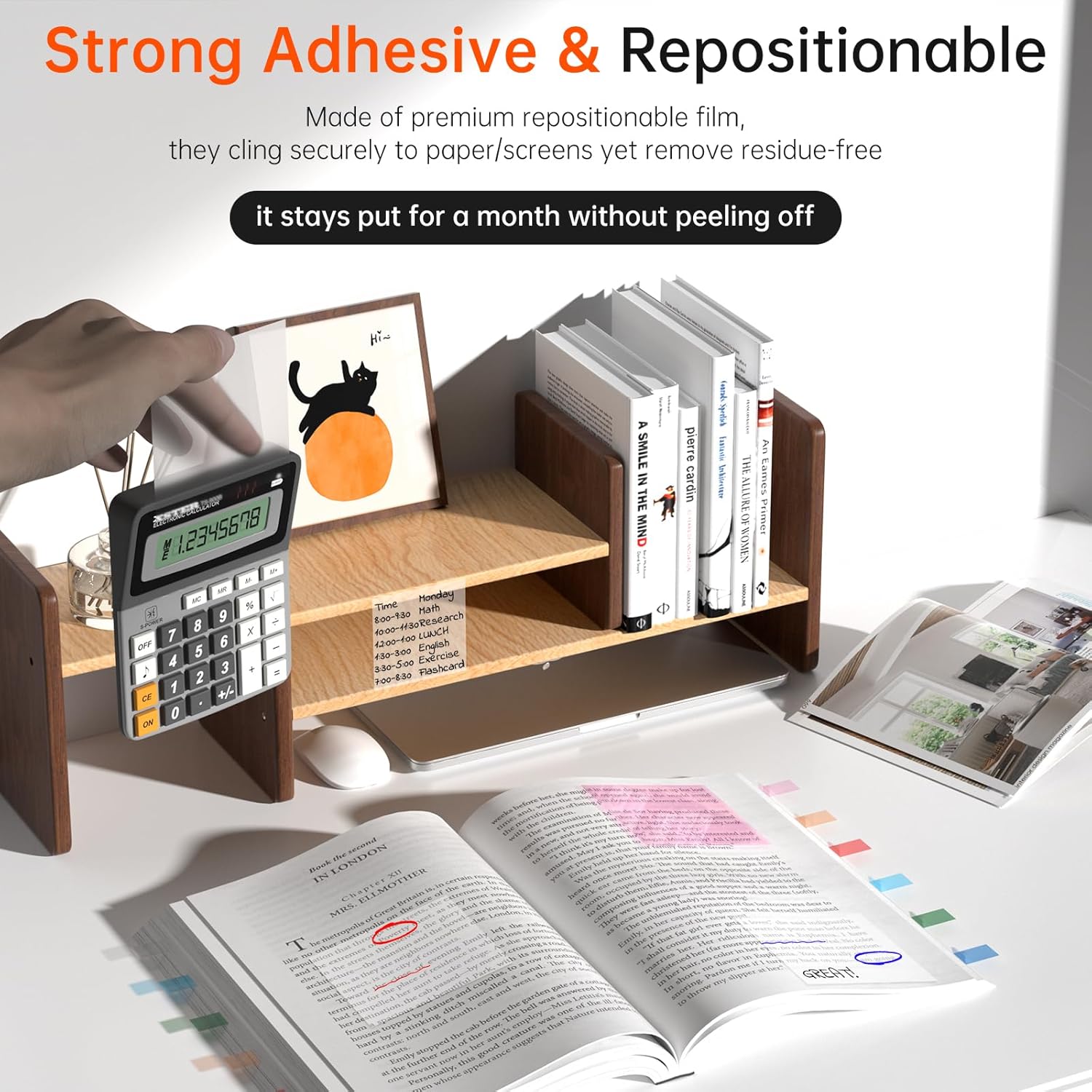 - 【More than 99.9% Transparency】:Meigaone's clear sticky notes let you highlight key information without covering text or image, allow effortless note-taking, making it easy to read and reference.