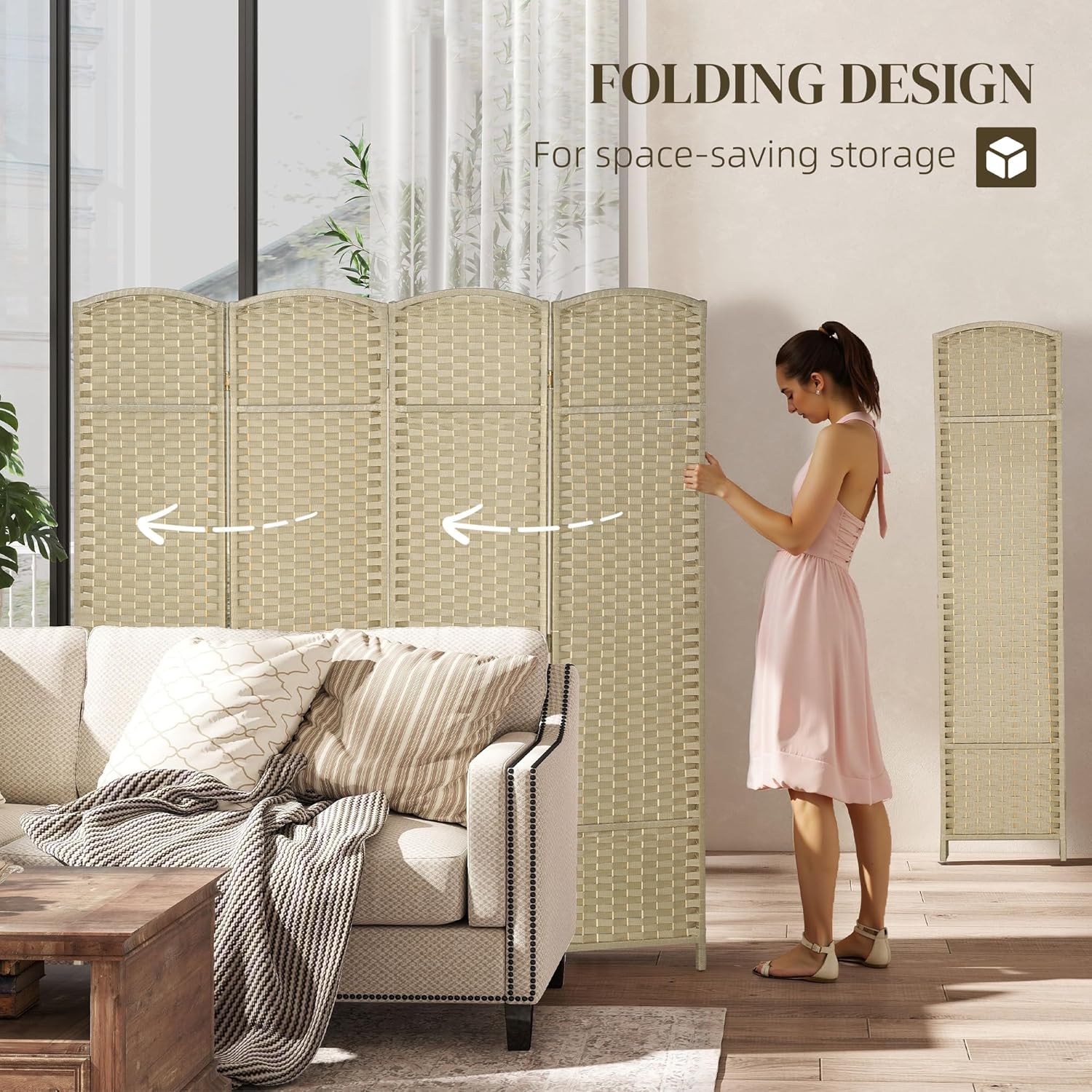 HOMCOM Room Divider, 4 Panel Folding Privacy Screen, 5.6' Tall Freestanding Partition for Home Office, Bedroom, Beige