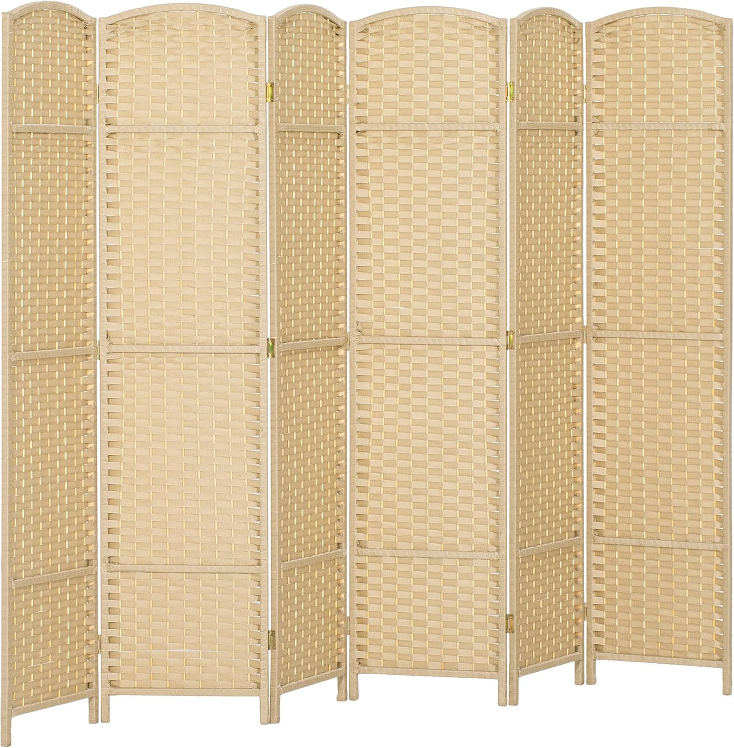 HOMCOM Room Divider, 6 Panel Folding Privacy Screen, 5.6' Tall Freestanding Wall Partition for Home Office, Bedroom, Beige