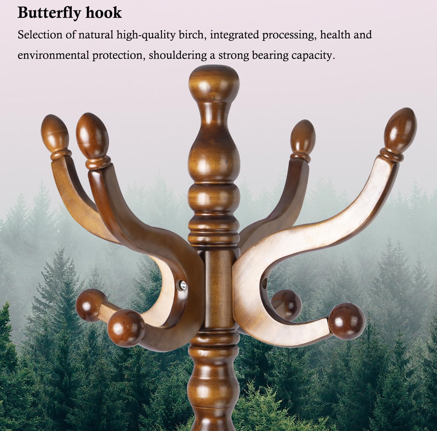 - 【Natural Solid Wood】The wooden coat rack is carefully selected from natural birch wood. The wood coat rack freestanding has a natural texture, which is tough and sturdy, wear-resistant and not easy to crack. Coat tree hanger can hang handbags, hats, keys, backpacks, scarves, ties, or any other small things you want.