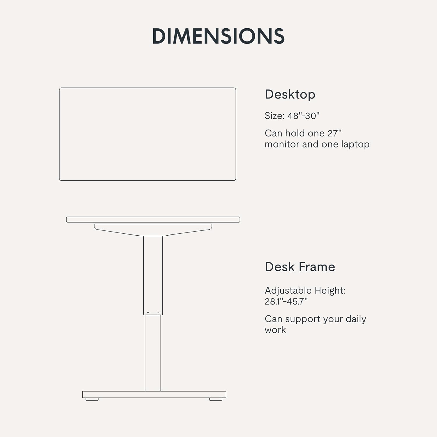 - SMOOTH ELECTRIC HEIGHT ADJUSTMENT: Say goodbye to manual height adjustments. This desk is equipped with an electric lift system that allows you to easily adjust the desk's height from 28.1" to 45.7"(without 1" thickness of table top included). Even better, the motor operates quietly with noise levels below 50 dB, ensuring a peaceful working environment.