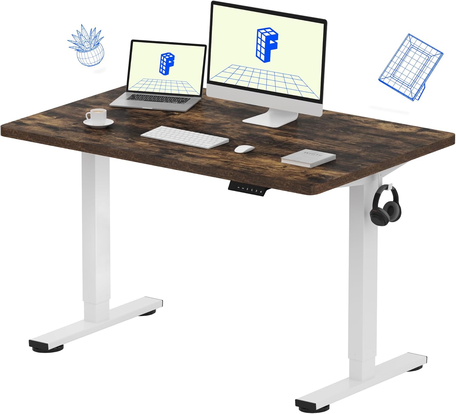 FLEXISPOT EN1 One Piece Standing Desk, 48" x 30" Electric Height Adjustable Sit Stand Desk for Home Office (White Frame + 48" Rustic Top, 2 Packages)