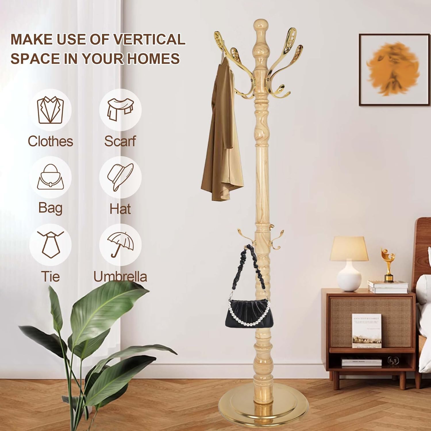 - COAT TREE FREESTANDING HEAVY DUTY: The Coat tree freestanding equipped with a thickened heavy duty metal circular base for maximum stability. The 3.14-inch diameter main pole supports up to 300 lbs, ensuring no wobbling even under heavy loads, ideal for high-traffic entryways or busy offices